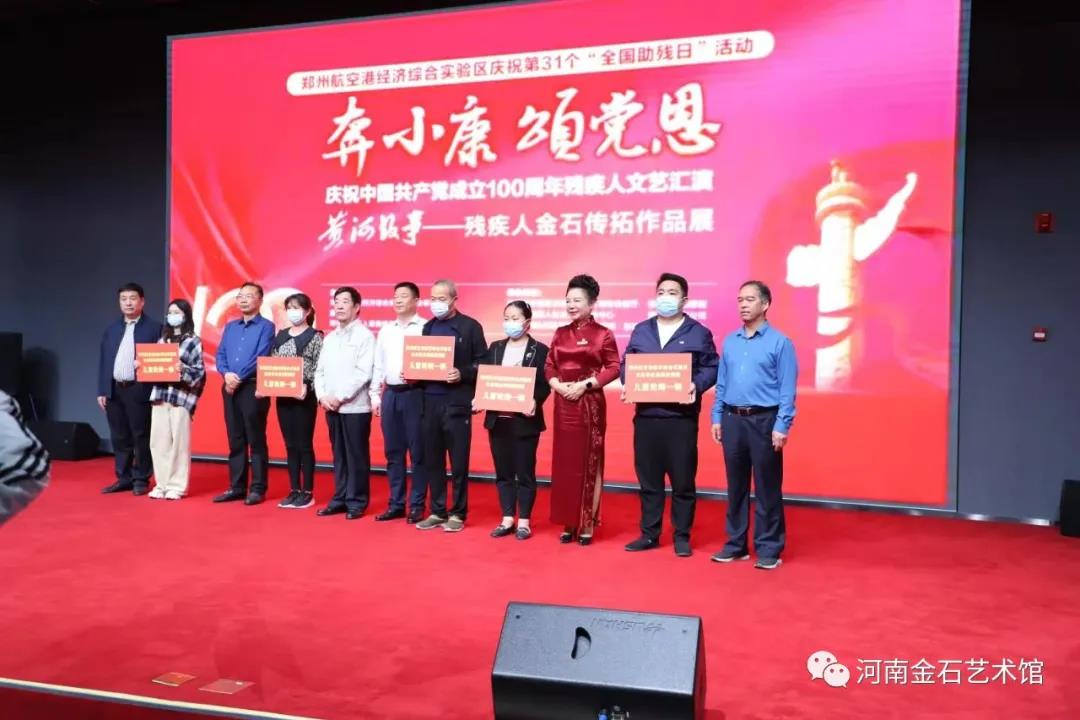 郑州航空港区管委会副主任王春山、郑州市残疾人联合会副理事长张松振、郑州慈善总会常务副会长李建民、河南园方集团党委书记薛荣、郑州市残疾人康复教育中心主任刘正义、河南省康复教育协会会长李姗姗、河南金石艺术馆法人冯万朋等领导和社会各界人士400多人参加展览开幕式。