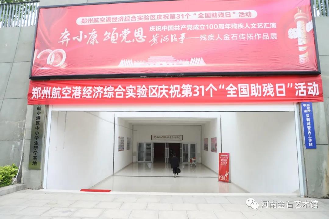 郑州航空港区管委会副主任王春山、郑州市残疾人联合会副理事长张松振、郑州慈善总会常务副会长李建民、河南园方集团党委书记薛荣、郑州市残疾人康复教育中心主任刘正义、河南省康复教育协会会长李姗姗、河南金石艺术馆法人冯万朋等领导和社会各界人士400多人参加展览开幕式。 2021年5月14日上午,我中心在郑州航空港经济综合实验区城市会客厅举办了“黄河故事——残疾人金石传拓作品展”。