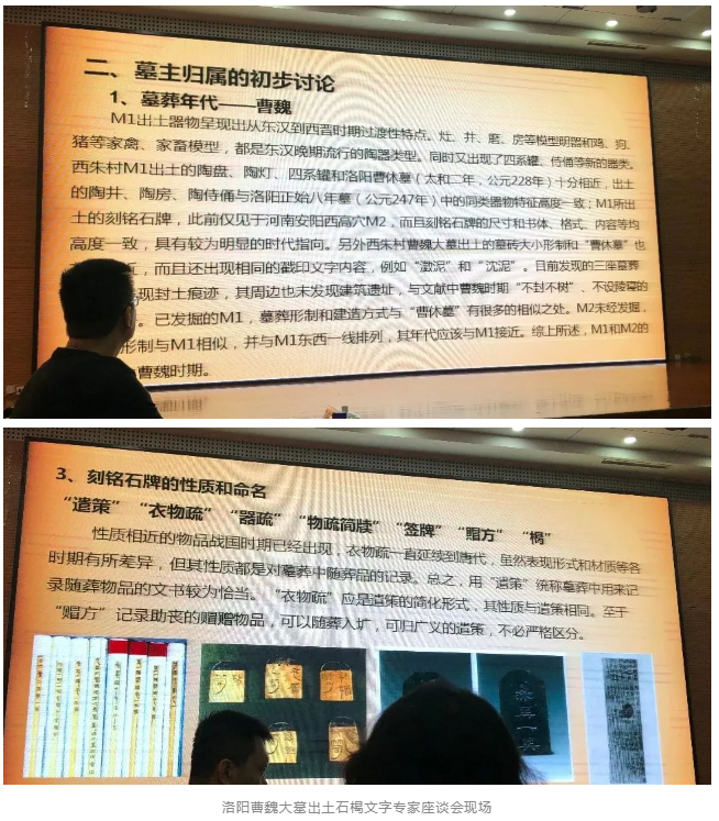 2009年底,河南安阳“曹操墓”出土,虽然考古界将西高穴大墓认定为曹操墓与文献所载高陵位置相符,且有“魏武王常所用”铭牌、鲁潜墓志、“隔”字铜印等重要证据,但仍有难以解开的如陪葬墓、墓葬规格和画像石当铺地石用等问题。10年来一直存在真伪的争论,而洛阳曹魏大墓的出土,为曹操墓的争论提供了强有力的佐证,这个佐证便是这325块石楬!