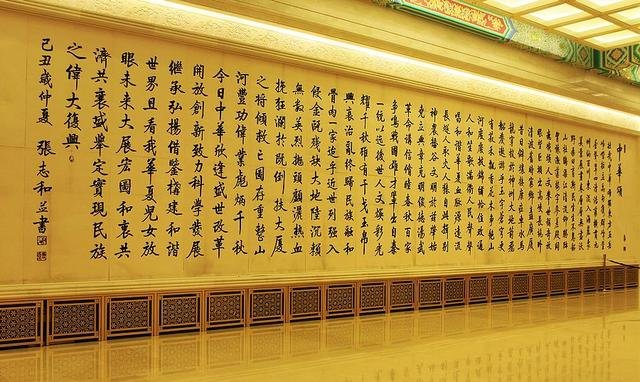 除了碑刻和墨迹帖本的呈现方式,人民大会堂中的这件《中华颂》,让我们认识到了一种别样的书法呈现方式——铁画。这无疑让人眼前一亮,原来用生铁锻造出的字,也可以如此生动灵活。
