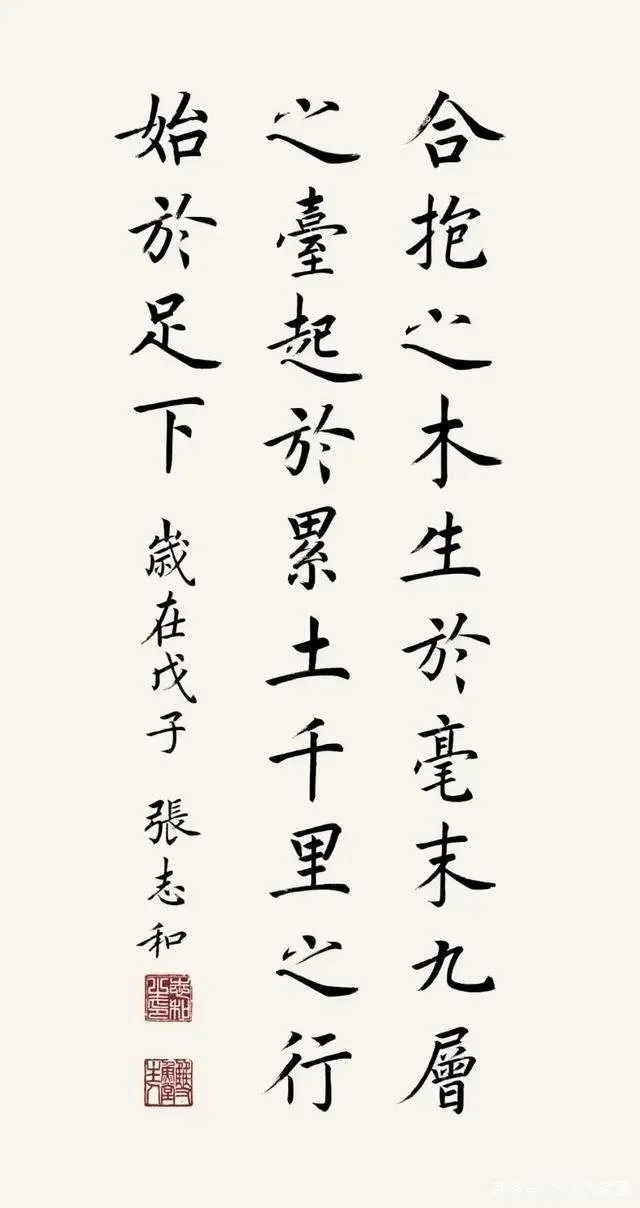 张志和先生的书法,向来独树一帜,当今书坛能有这样功力的书法家并不多。他的书法作品点画都极其精到,笔致圆融而饱满,字里行间蕴藏着一股谦谦君子之气,明显是受到唐代楷书大家褚遂良的影响。