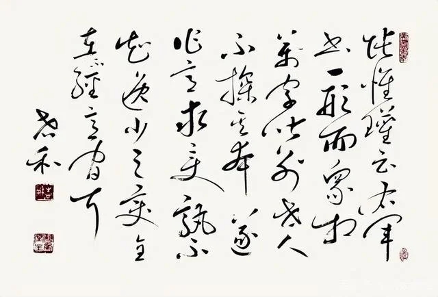 这是一件明显的“启功体”书法,文字结体偏于长方,虽然相较于启功先生一般的作品,其笔画之间强烈的粗细对比被弱化了,但点画之间相互呼应,顾盼生辉,每一个字都极其流畅自然。