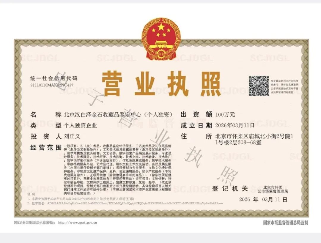 (三)责任防线:真实披露+严格追责,强化权益保障法规核心要求经营、拍卖环节必须履行来源与鉴定披露义务,需主动提供来源证明、鉴定评估文件、传承记录,确保藏品信息透明。针对违规行为设定严厉法律责任,虚假鉴定、制假售假、隐瞒来源等行为,将面临罚款、吊销资质等行政处罚,情节严重者追究刑事责任;拍卖机构若不实陈述藏品年代、真伪、来源,可直接吊销拍卖牌照,以刚性约束保障收藏者合法权益。此外,境外艺术品展览、进出口需提前45日向省级文旅部门申请审批,规范跨境流通秩序。