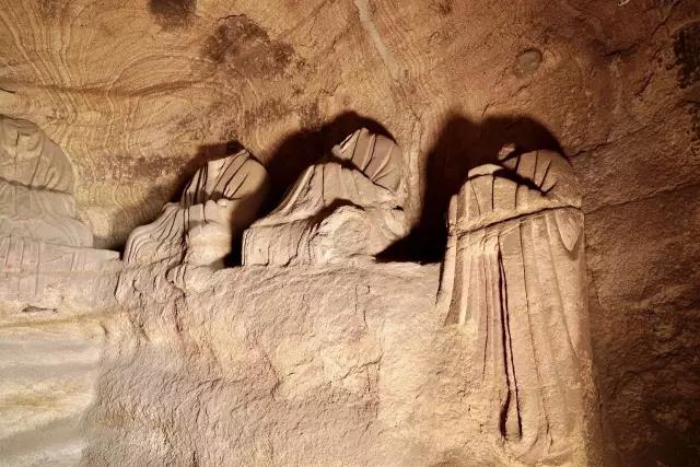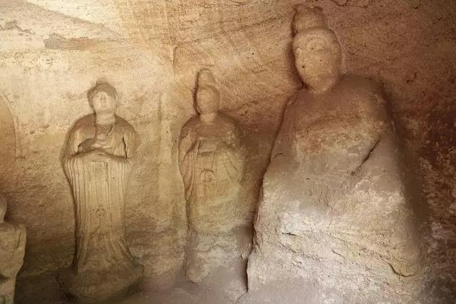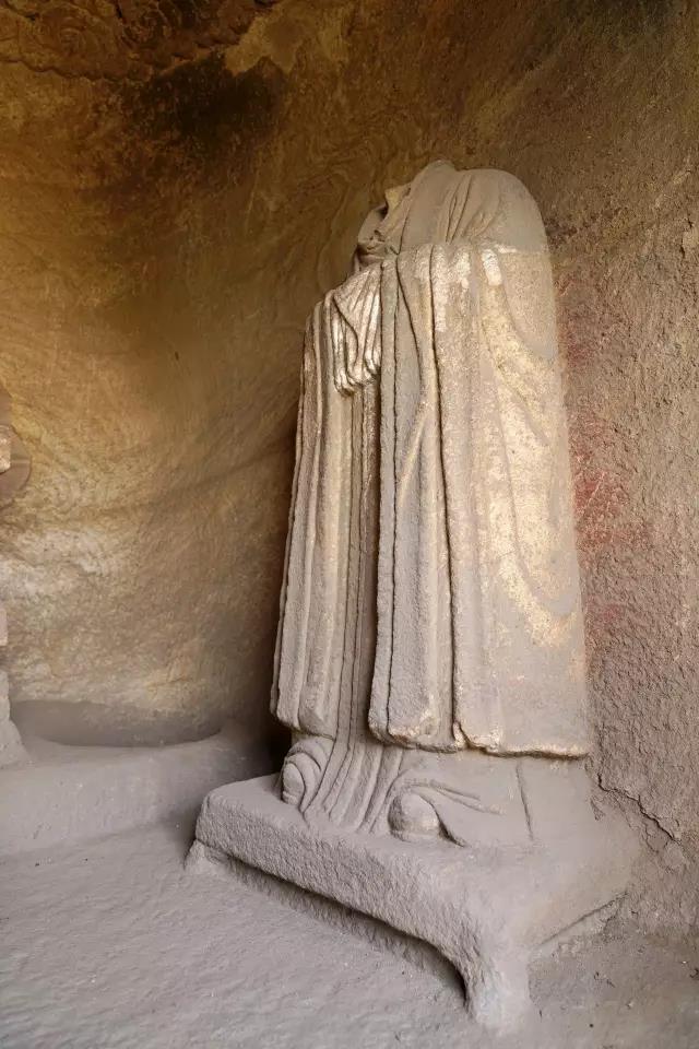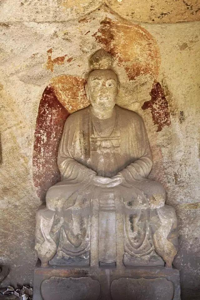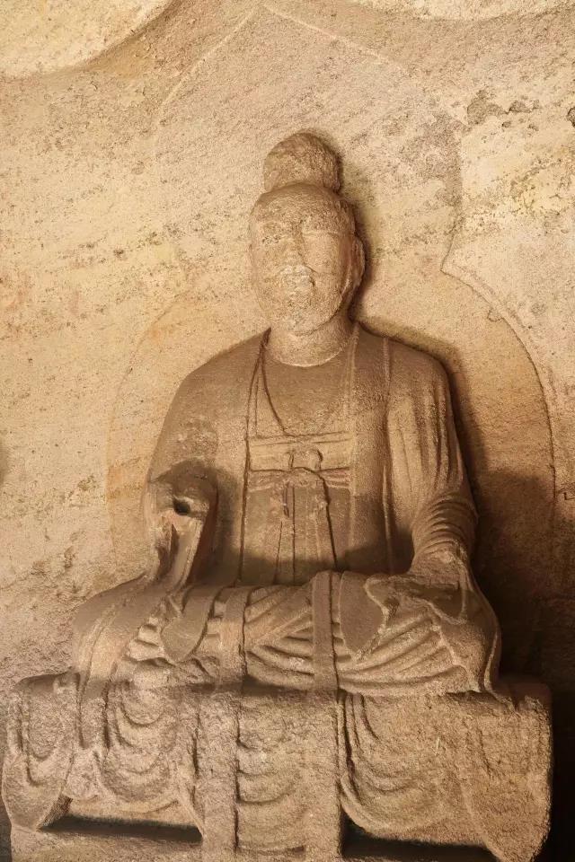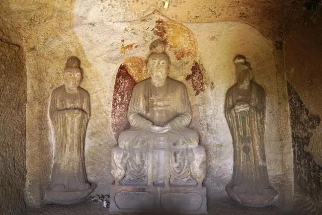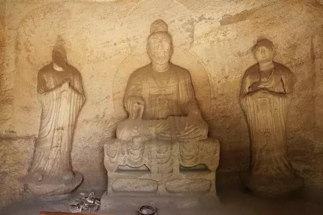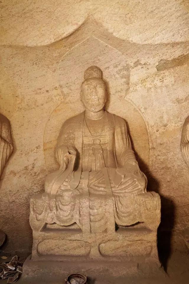 第五窟为玄真龛,高166厘米,深186厘米,内雕石像三尊,主像结跏而坐,侍者立于两侧莲台之上,衣饰、手法及造像风格与第四窟同。