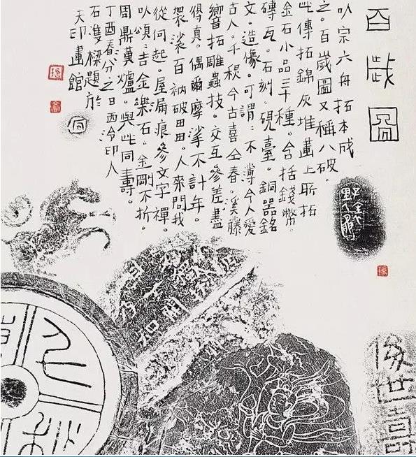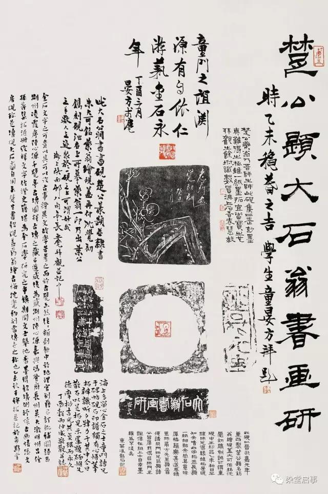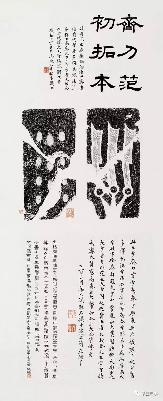 童门弟子继承了老师在这一方面的素养与特长,于历代金石收藏、题跋、传拓、铭刻等领域颇有建树,成为当今海上艺林一道独特的风景线。比如我们能够看到陶文、泉布、石刻、砖砚、画像等门类的拓片,经过他们的题跋,为古物增添了不少新的内涵。题跋文字或考证器物之源流,或介绍画像之艺术。书法饶有古意,兴与古会。