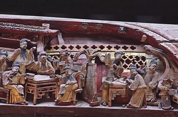 承志堂,位于安徽黟县,为清末盐商汪定贵住宅,承志堂的木雕,大多层次繁复,人物众多,且人不同面,面不同神。其中木雕“渔樵耕读”、“百子闹元宵”、“唐肃宗宴客图”和“董卓进京”、“长饭坡”、“三英战吕布”等京剧图案,不仅雕刻槽巧,层次分明,线条清晰,而且构图宏富,场面壮观。