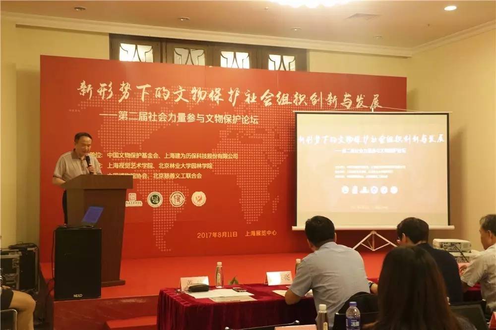 8月11日,由中国文物保护基金会、上海建为历保科技股份有限公司主办的“新形势下的文物保护社会组织创新与发展——第二届社会力量参与文物保护论坛”在上海展览中心召开。来自主协办单位、国家文物局、民政部社会组织管理局、社会服务机构、民间文物保护组织、志愿者团体、企业等几十家机构的代表,博物馆、高校、科研院所的专家、学者、师生及媒体记者等100多名代表参加了本次论坛。
