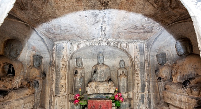 大住圣窟门外设置了门神。窟内佛像集大成者,神态各异。窟内佛像共计42尊,造型精致,或古朴严谨,或端庄秀丽,或雍荣大度,显示了高超的雕刻技艺。