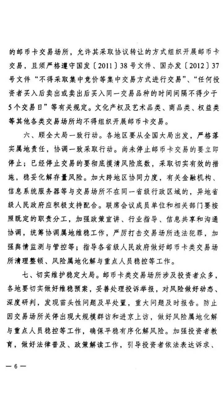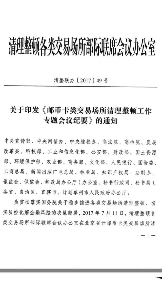 今日清整联办发布的《邮币卡类交易场所清理整顿工作专题会议纪要》对外进行了公开,这个通知的出台,对于近年来出现的数百家邮币卡交易的文交所简直就是晴天霹雳。
